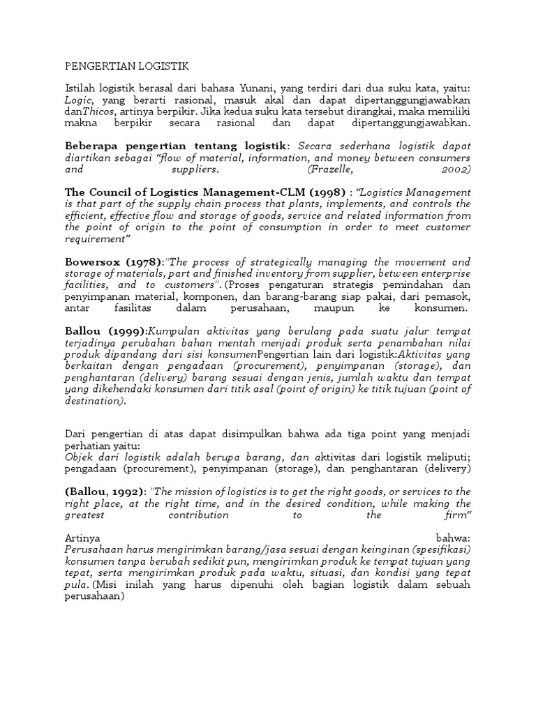 Pengertian Menurut Para Ahli. Pengertian Manajemen Logistik Masa Depan Logistik Indonesia 1. Penilaian tersebut mencakup kegiatan-kegiatan berikut.
